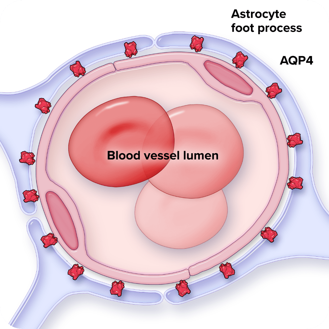 blood-brain barrier and binds to AQP4 on astrocyte foot processes in the CNS.